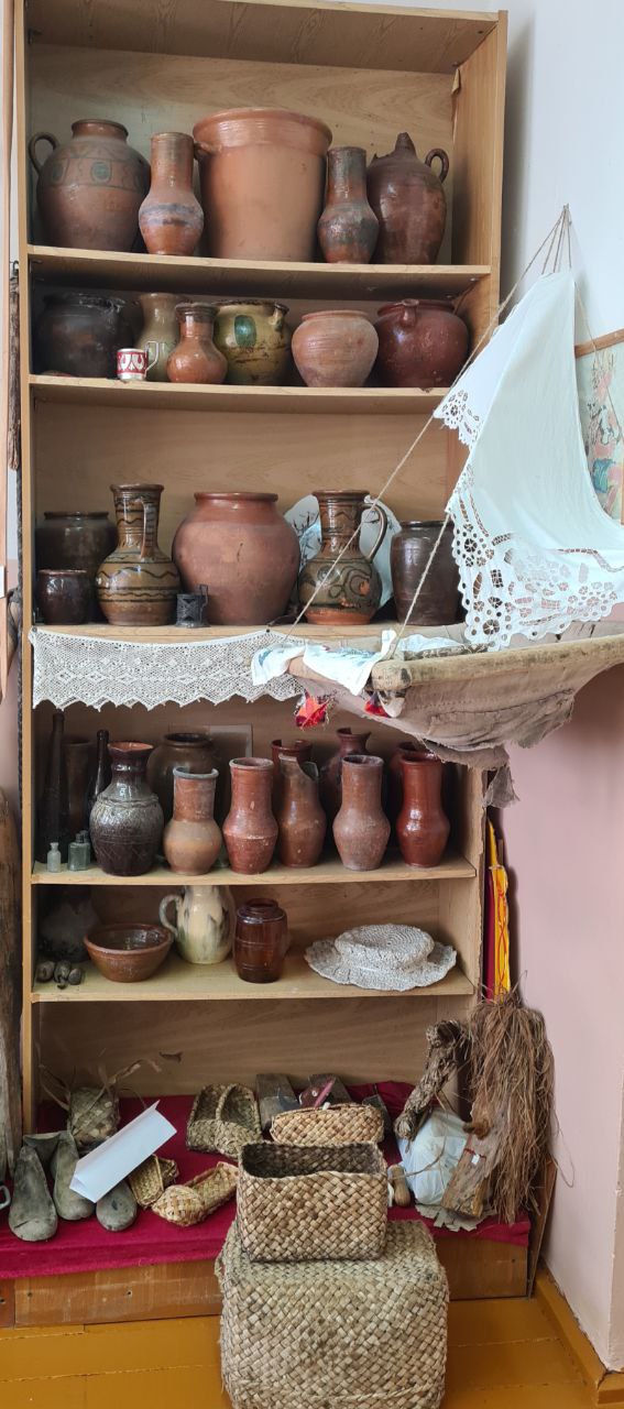 Первая музейная экспозиция называлась «Предметы быта» и насчитывала 25 старинных предметов. Постепенно экспозиции нашего музея пополнялись. Появились экспозиции по следующим направлениям: «Рукоделие», «Плетение», «Прядение и ткачество», «Предметы быта». В год 75-летия Победы дополнена экспозиция о героях Великой Отечественной войны.